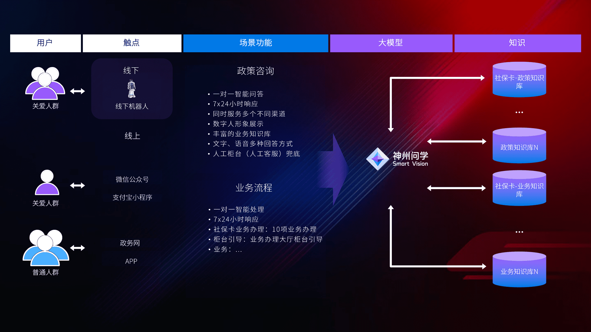 • 线上线下全覆盖:线上提供微信公众号、、、支付宝小程序、、政务网、、、app多种渠道,,,与线下机器人形成完整服务体系。。。。